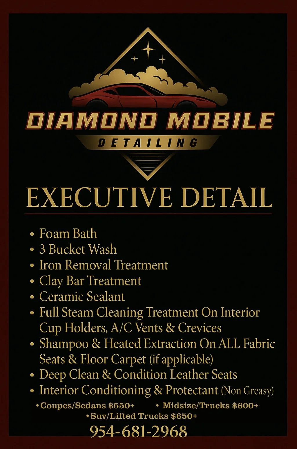 Diamond Mobile Detailing is more than a service, it’s a standard. Built on success, determination and a winning mindset, our mission is to give every client an immaculate experience that reflects the success we stand for and leave their vehicle top tier.